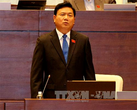 | Bộ trưởng Bộ Giao thông Vận tải Đinh La Thăng trả lời chất vấn của đại biểu Quốc hội. Ảnh: Phạm Kiên - TTXVN. |