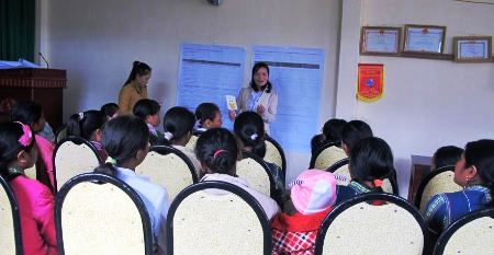 Một buổi họp cộng đồng lấy ý kiến khách hàng về chấm điểm và nhận xét về chất lượng dịch vụ tại trạm y tế xã Rô Men, huyện Đam Rông, tỉnh Lâm Đồng