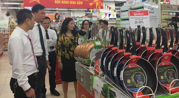 Kiểm tra hàng hóa tại siêu thị Vinmart, Hà Nội. |
