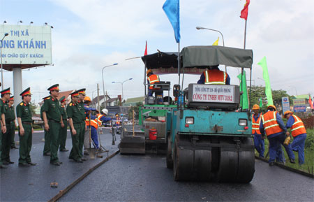 Phương tiện của Tổng công ty 319 thi công dự án cải tạo nền, mặt đường Quốc lộ 1A (đoạn Bình Thuận-Đồng Nai) theo hình thức B.O.T.