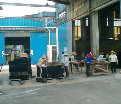 | Sau sự cố quá khích, công nhân Công ty chế biến gỗ Pisico (KCN Tam Phước, Đồng Nai) tích cực làm việc tăng ca. |