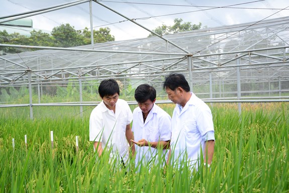 Các kỹ sư của Tập đoàn Lộc Trời kiểm tra quy trình sản xuất lúa gạo áp dụng công nghệ cao.