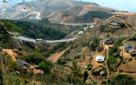 Đèo Pha Đin hiểm trở đã được hạ thấp bằng những cây cầu cạn, mặt đường mở rộng.
