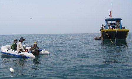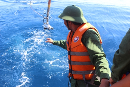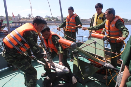 Đánh dấu vị trí bom, mìn trước khi trục vớt.
