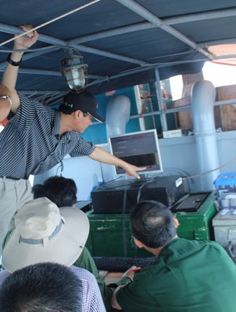 Đọc các tín hiệu bom, mìn dưới đáy biển qua màm hình.