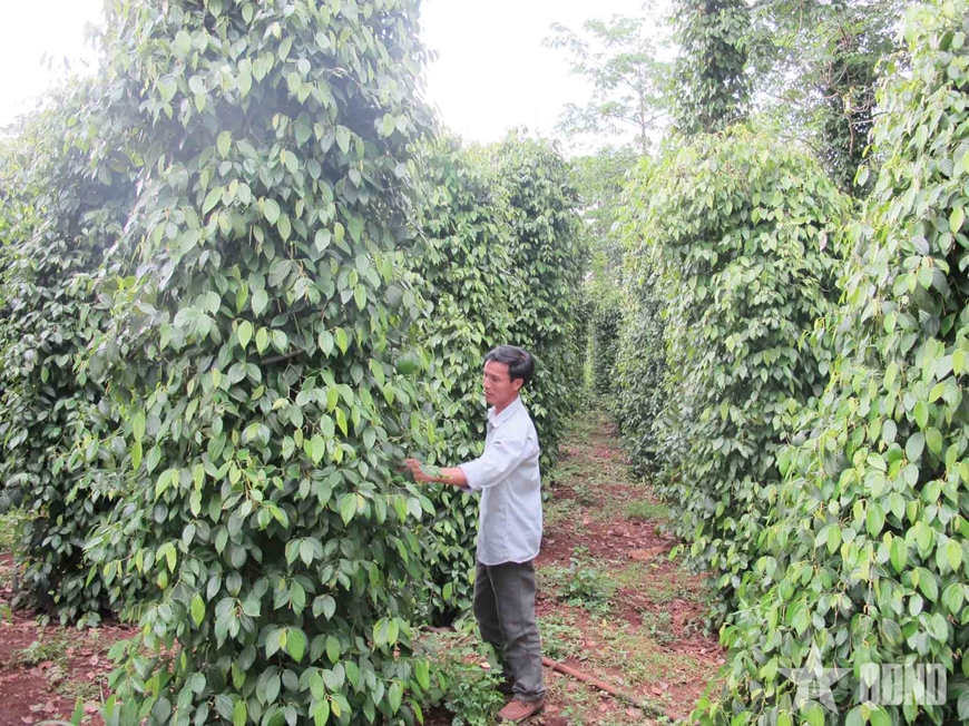 | Nông dân xã Bù Gia Mập, tỉnh Đồng Nai chăm sóc vườn hồ tiêu. |