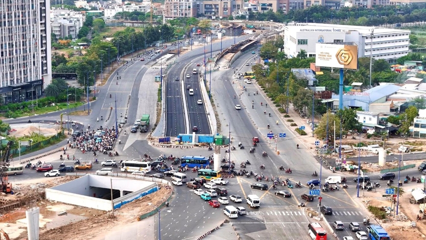 Nút giao An Phú là công trình giao thông trọng điểm của TP Hồ Chí Minh, dự kiến về đích trong quý II-2026. Ảnh: TRẦN ÚT