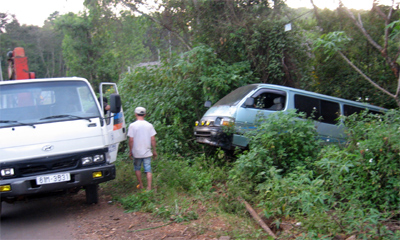 Theo những người chứng kiến, vào thời điểm trên, một xe ô tô kéo theo sau một xe khách bị hư hỏng bằng dây cáp, đi từ đường Cao Bằng ra đường Lê Thánh Tôn. Khi đến giữa con dốc, dây cáp bị đứt khiến xe khách trên lao xuống hố. Rất may, đoạn đường xảy ra tai nạn vắng người nên không có thương vong. Chủ phương tiện đã gọi xe cứu hộ, tự khắc phục hậu quả.