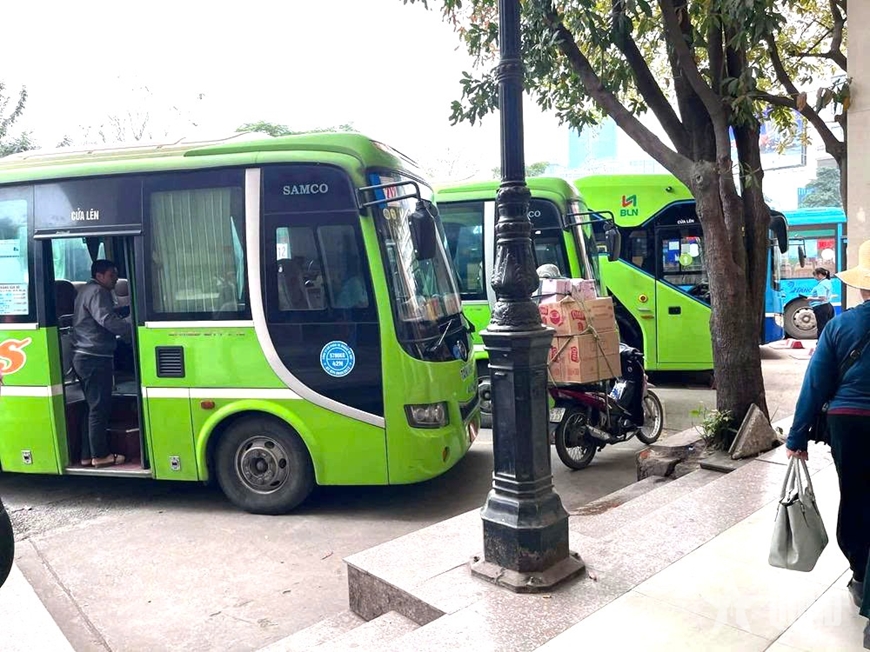 | Xe khách chuẩn bị xuất bến tại Bến xe Mỹ Đình. Ảnh: Quế Đan - Cẩm Châu |