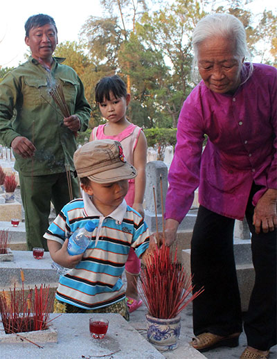 Nén hương tri ân các anh hùng liệt sĩ của người dân địa phương.