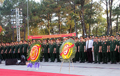 Đảng ủy, Bộ tư lệnh Binh đoàn 12, cùng đại diện các đơn vị dâng hương trước Đài tưởng niệm.