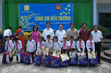 Nhân dịp khai giảng năm học mới năm học 2014-2015, chương trình “Cùng em đến trường” do Báo Lao Động, Quỹ Tấm lòng vàng Lao Động vận động đã chuyển quà tặng trị giá hơn 1,3 tỷ đồng gồm: Vở viết, cặp sách, quần áo… tặng các em học sinh nghèo, có hoàn cảnh khó khăn tại 46 tỉnh, thành phố trên cả nước...