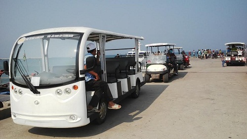 | Hệ thống xe điện cao cấp phục vụ du khách tham quan đảo Cô Tô. |