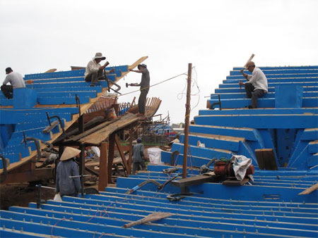 Được hỗ trợ vốn, ngư dân đóng tàu chuẩn bị vươn khơi. Ảnh: An Lý