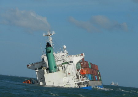 Tàu bị nạn chở đầy container sắp bị chìm hoàn toàn