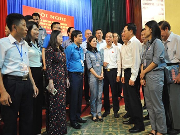 Đại biểu Quốc hội tiếp xúc trao đổi với các cử tri tại Công ty cổ phần gang thép Thái Nguyên. Ảnh: Tisco.com.vn