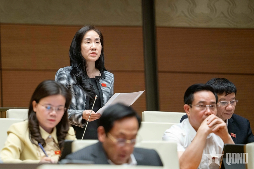 | Đại biểu Đoàn Thị Thanh Mai phát biểu. |
