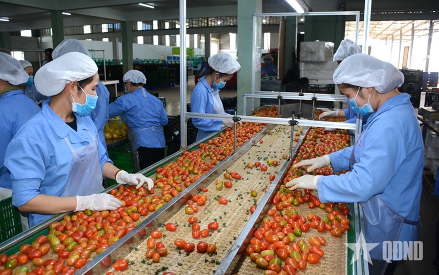| Chế biến cà chua xuất khẩu tại Công ty TNHH Nông sản Phong Thúy, xã Đức Trọng, tỉnh Lâm Đồng. |