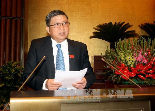 Chủ nhiệm Ủy ban kinh tế của Quốc hội Nguyễn Văn Giàu trình bày Báo cáo giải trình, tiếp thu, chỉnh lý dự thảo Luật quản lý, sử dụng vốn nhà nước đầu tư vào sản xuất, kinh doanh. Ảnh: Phạm Kiên – TTXVN.