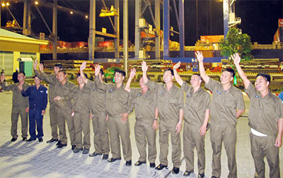 Lính thợ Tổng công ty Tân Cảng Sài Gòn phấn khởi khi hoàn hoàn thành lệnh "Làm hàng đầu Xuân".