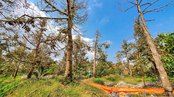 Diện tích sầu riêng trên địa bàn xã Mỹ Long đang bị ảnh hưởng nghiêm trọng do hạn hán, nước mặn xâm nhập kéo dài. |