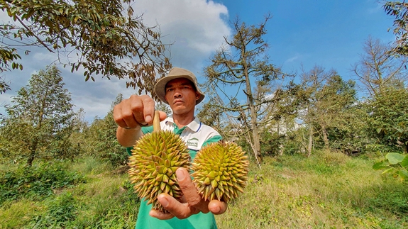 Niềm vui của người trồng sầu riêng khi được cấp nước ngọt tưới cây. |