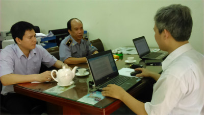 Phó cục trưởng Nguyễn Văn Trung (thứ hai, từ trái sang) trong buổi làm việc với phóng viên Báo Quân đội nhân dân. Ảnh: Phúc Thái.