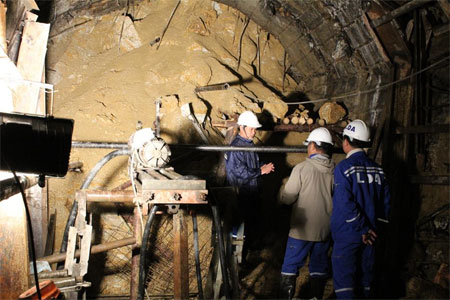 | Công việc có lúc bị ngừng do đất đá rơi và đùn ra |