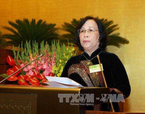 Bộ trưởng Bộ Lao động, thương binh và xã hội Phạm Thị Hải Chuyền trình bày Tờ trình về dự án Luật an toàn vệ sinh lao động. Ảnh: TTXVN.