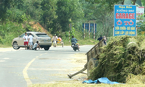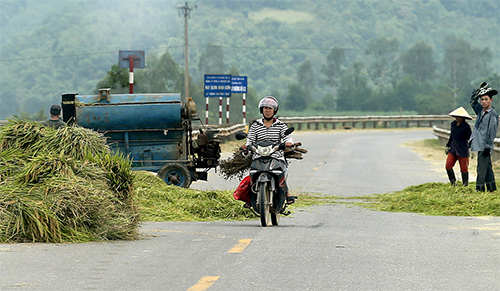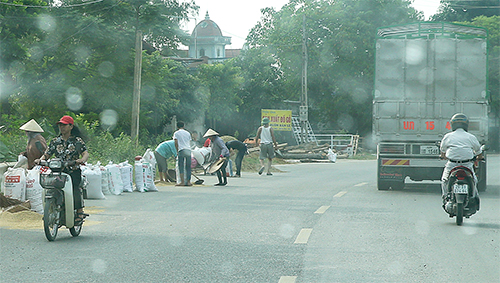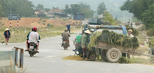 Hiện nay, nhiều địa phương dọc trục đường Hồ Chí Minh đang vào mùa gặt rộ (nhất là từ Thanh Hóa đến Hà Tĩnh) nên bà con đã tận dụng trục đường này làm... sân phơi thóc, rơm rạ!...