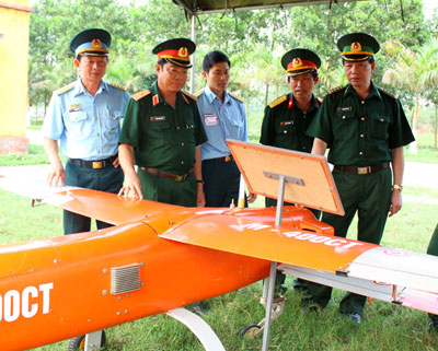 | Các cán bộ tham dự tập huấn điều lệnh toàn quân năm 2011, tham quan máy bay không người lái, do Quân chủng PK-KQ nghiên cứu, sản xuất. Ảnh: Hoàng Hà. |