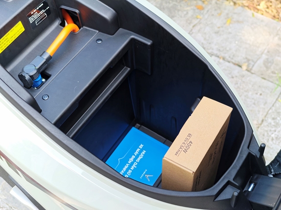 “Cốp xe Feliz rộng đến 34 lít, tôi để thoải mái hai mũ bảo hiểm, ô che nắng, áo khoác và cả bộ áo mưa mà vẫn vừa. Với nam giới thì sự gọn gàng này là điểm cộng cực lớn”, anh hào hứng.