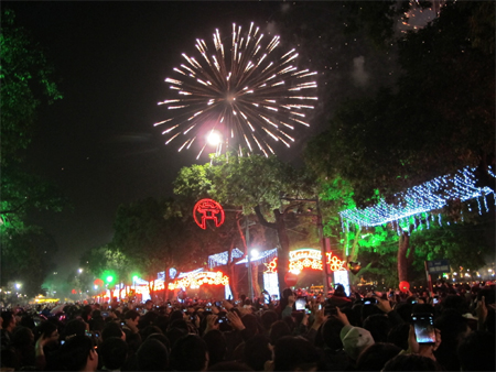 | Pháo hoa đêm giao thừa tại hồ Hoàn Kiếm, Hà Nội |