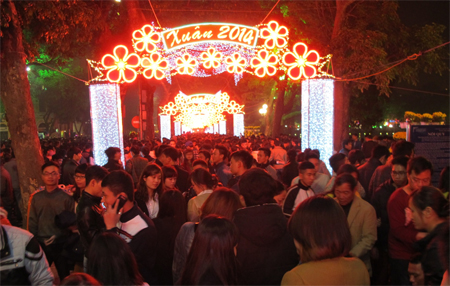 Quang cảnh đêm giao thừa tại hồ Hoàn Kiếm, Hà Nội