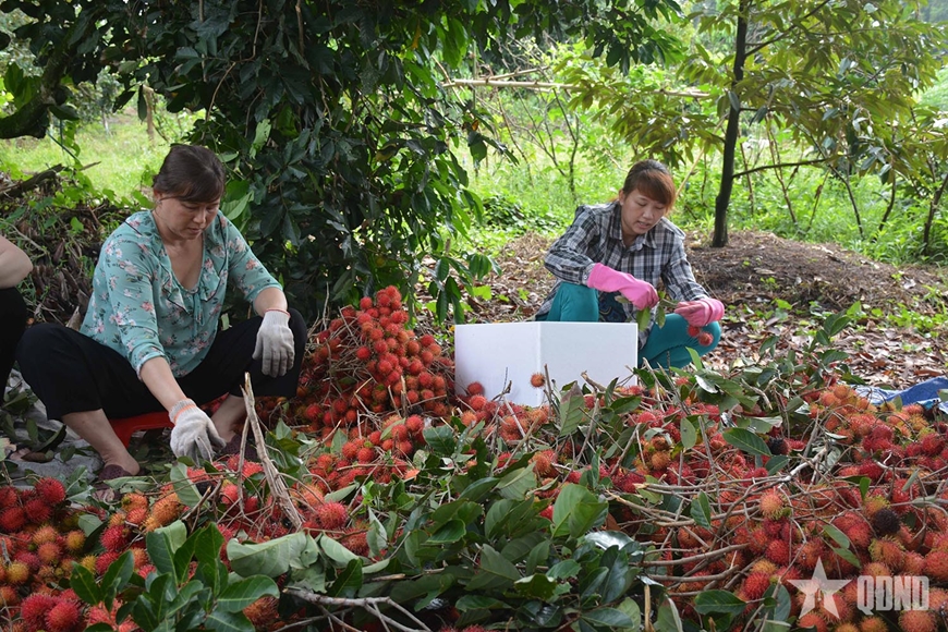 | Thu hoạch chôm chôm ở xã Trừ Văn Thố, thành phố Hồ Chí Minh. Ảnh NGUYỄN KIỂM |