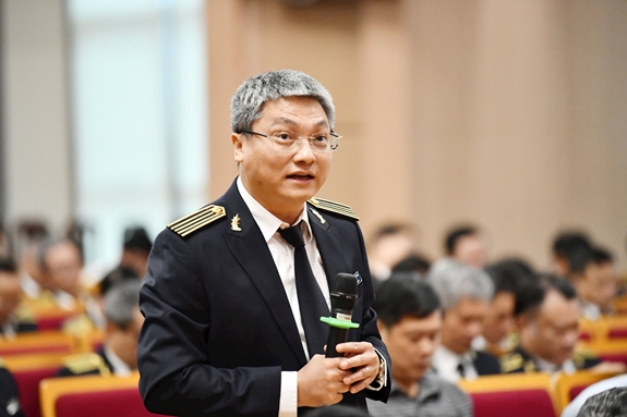 Vụ trưởng Vụ Tổng hợp Hoàng Văn Lương tham luận tại hội nghị. Ảnh: NGHI LỘC |