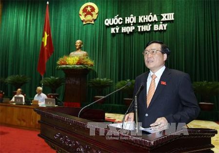 Viện trưởng Viện kiểm sát nhân dân tối cao Nguyễn Hòa Bình trình bày Tờ trình dự án Luật tổ chức Viện kiểm sát nhân dân (sửa đổi). Ảnh: An Đăng - TTXVN.