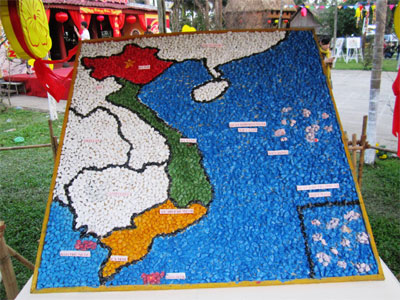 Bản đồ Việt Nam cùng hai quần đảo Hoàng Sa, Trường Sa bằng đá sỏi.
