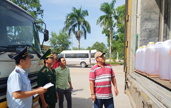 Kiểm tra hàng hóa tại Cửa khẩu Quốc tế Hà Tiên, tỉnh Kiên Giang. Ảnh: TRƯỜNG GIANG |