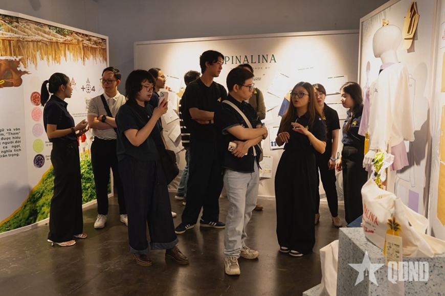 | Triển lãm “Mặc thơm” giới thiệu các thiết kế thời trang độc đáo làm từ sợi lá dứa. |