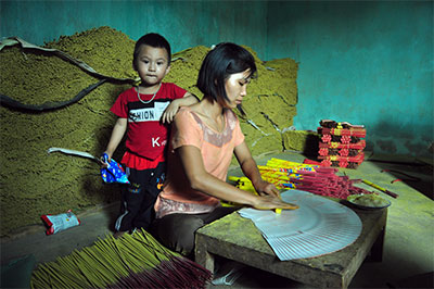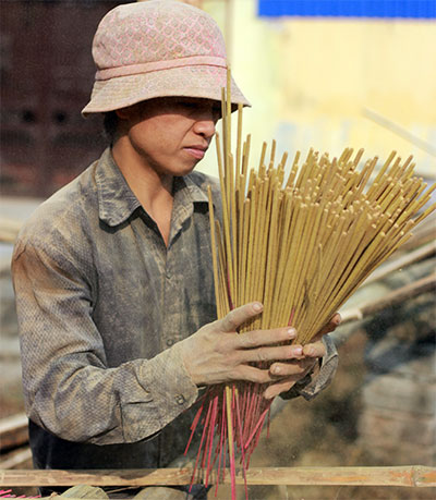 Những người làm thuê tại các xưởng hương có thu nhập khoảng 3 triệu đồng/tháng.
