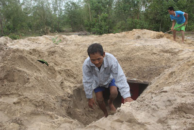Người dân ven biển Quảng Trị đào hầm làm nơi trú tránh bão