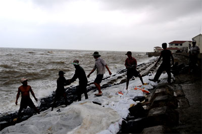 QĐND Online - Xác định bão HaiYan là cơn bão cực lớn, diễn biến phức tạp và dự báo gần như không thể tránh khỏi sự tàn phá khốc liệt, trong ngày 9-11, nhân dân trên khắp các tỉnh, thành miền Trung đã chủ động kêu gọi tàu, thuyền vào bờ tránh trú bão cũng như gia cố đê kè chắn sóng, chằng chống nhà và sơ tán người ra khỏi khu vực nguy hiểm.