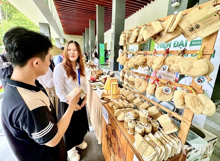 Những nỗ lực này không chỉ dừng lại ở ý tưởng mà đã được hiện thực hóa qua các sự kiện thiết thực, nơi giới trẻ có cơ hội trình bày các giải pháp và công nghệ xanh. Tại Diễn đàn “Chuyển đổi xanh và ngày hội tái chế 2025”, hàng trăm sáng kiến đã được giới thiệu. Theo bà Vũ Kim Hạnh, Chủ tịch Hội Doanh nghiệp Hàng Việt Nam chất lượng cao, sự kiện quy tụ nhiều sản phẩm và giải pháp sáng tạo từ cộng đồng khởi nghiệp trẻ. Từ các gian triển lãm đến các sáng kiến cụ thể, một chuỗi cảm hứng về chuyển đổi xanh được hình thành, bao gồm: Sản phẩm tẩy rửa từ vỏ dứa; vải vụn ngành may trở thành túi tote và phụ kiện; viên nén trồng cây từ xơ dừa; cùng các sản phẩm làm sạch không khí ứng dụng vi sinh...