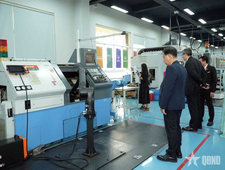 | Các đại biểu kiều bào tham quan Trường Đại học Quốc tế Miền Đông dịp xuân 2026. Ảnh: KIỀU OANH |