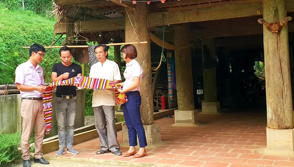 Anh Hà Huy Thục ở bản Đôn, xã Thành Lâm, huyện Bá Thước, tỉnh Thanh Hóa đang trao đổi với cán bộ NHCSXH về phương án quảng bá, phát triển sản phẩm du lịch. |