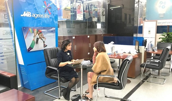 Nhân viên MB Ageas Life tư vấn bảo hiểm cho khách hàng. |