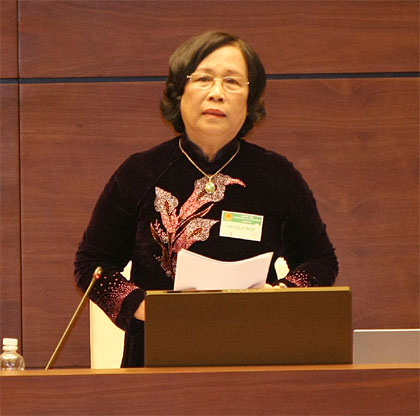 Bộ trưởng Bộ Lao động, Thương binh và Xã hội Phạm Thị Hải Chuyền trả lời chất vấn của đại biểu Quốc hội. Ảnh: Phạm Kiên - TTXVN.