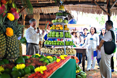 Nông dân huyện Phong Điền, TP Cần Thơ tự tin giới thiệu các sản phẩm nông nghiệp của địa phương với du khách.