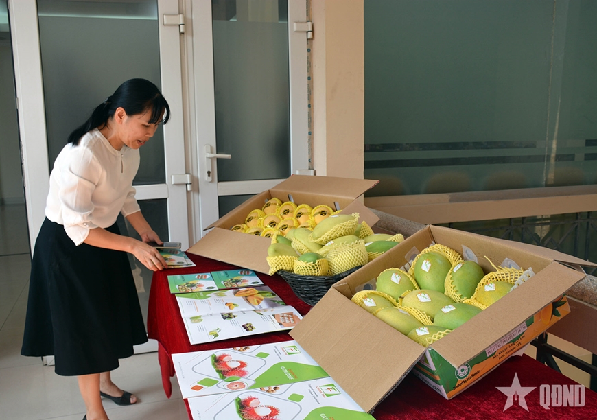 | Trưng bày, giới thiệu xoài tại lễ công bố xoài Việt Nam được phép xuất khẩu sang thị trường Mỹ. Ảnh NGUYỄN KIỂM |